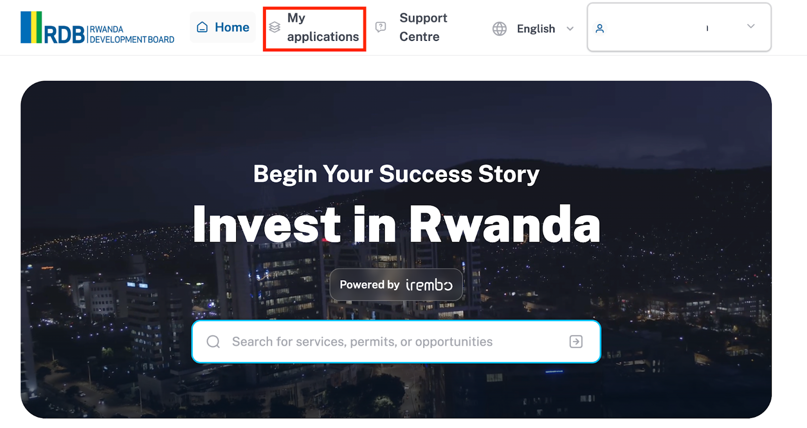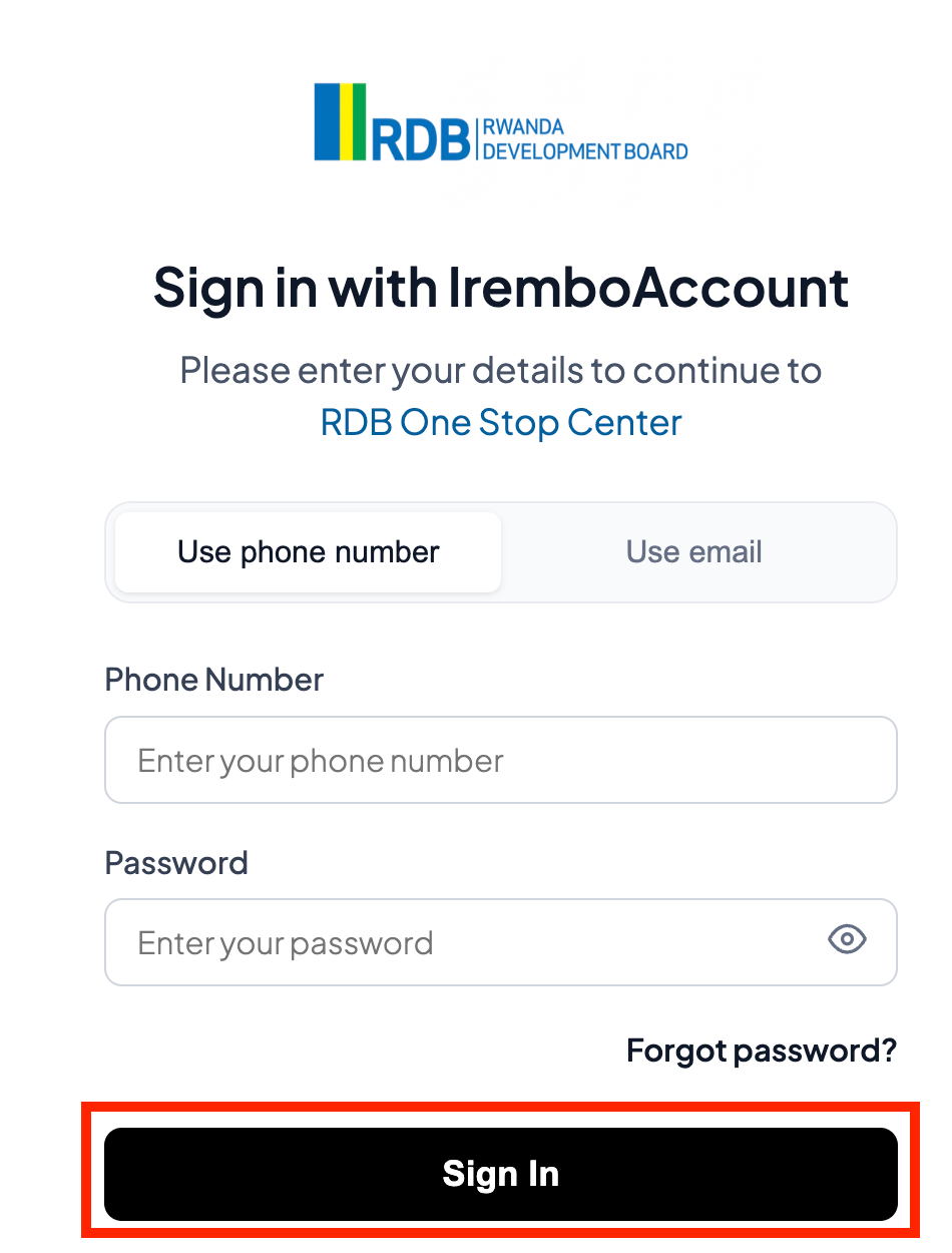 Visit the RDB One Stop Center platform: onestopcentre.rdb.rw