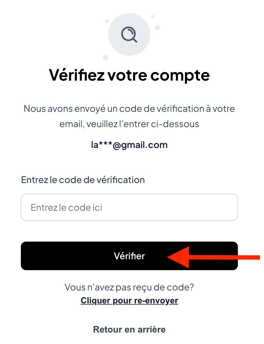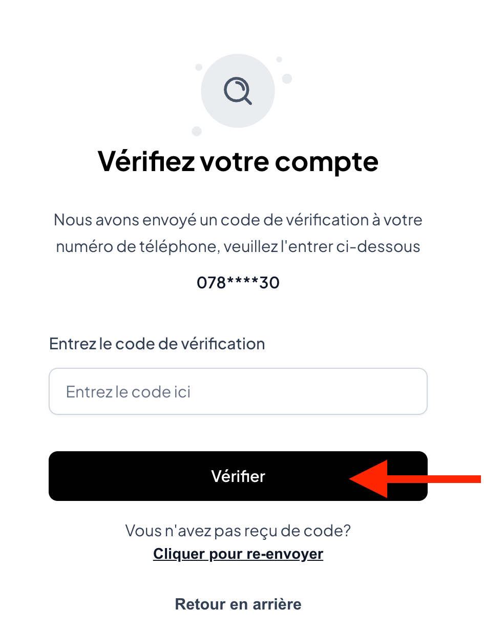 Un mot de passe à usage unique (OTP) vous sera envoyé par SMS ou par e-mail, selon les informations liées à votre compte. Pour les membres de la diaspora, l’OTP est envoyé à l’adresse e-mail associée à leur carte consulaire. Cliquez ensuite sur « Vérifier ».