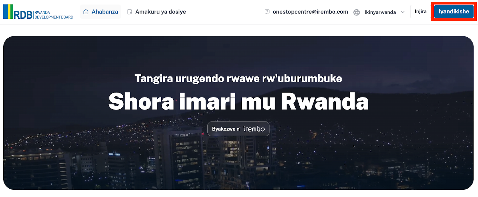 Jya kuri onestopcentre.rdb.rw maze ukande kuri Iyandikishe.